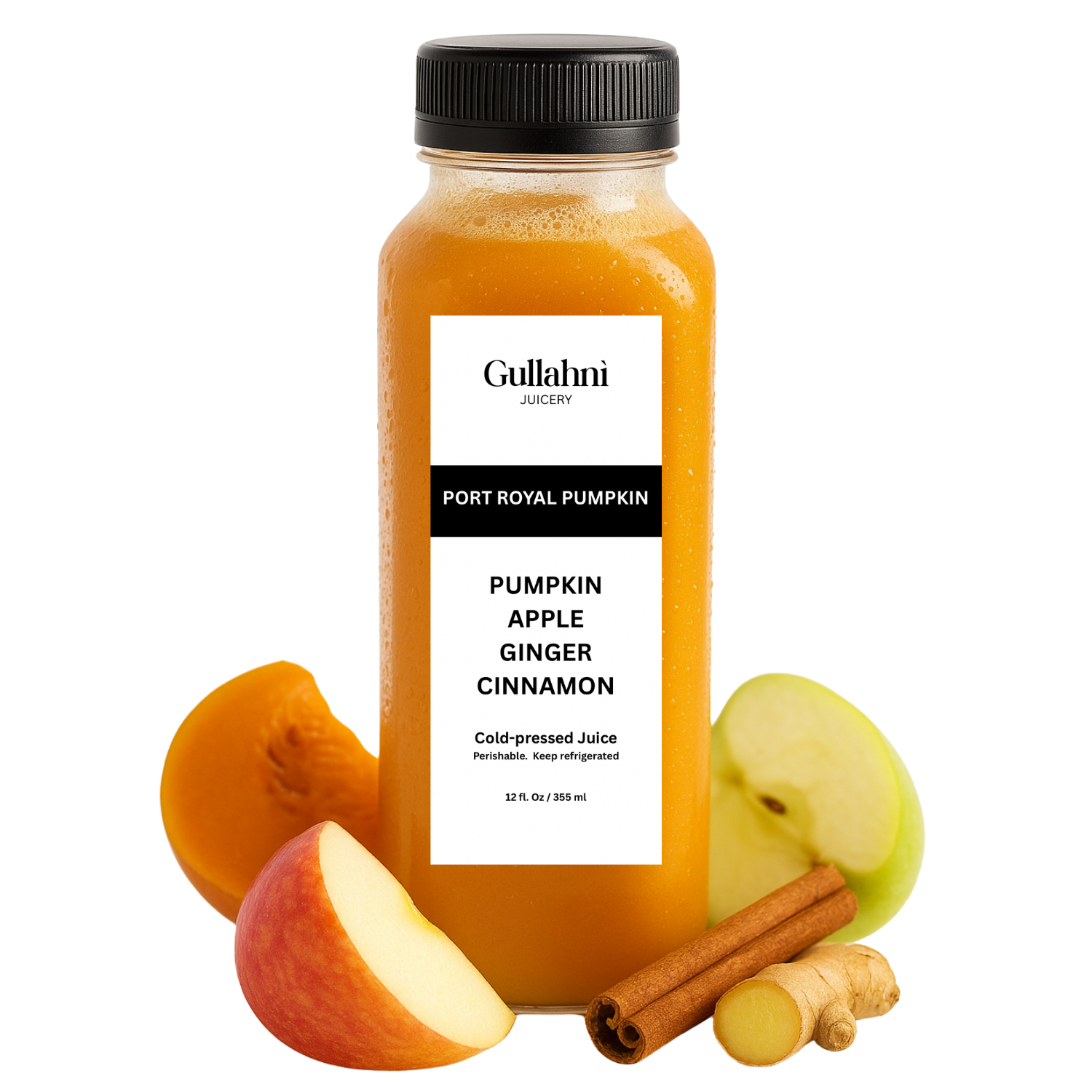 PORT ROYAL PUMPKIN is a meticulously crafted cold-pressed juice that captures the essence of autumn through a sophisticated blend of honeycrisp, gala, and Granny Smith apples, complemented by warming notes of ginger and cinnamon. This limited edition offering pays tribute to the historic Port Royal Sound region of Beaufort, South Carolina, infusing each bottle with the character and heritage of the Lowcountry. Expertly pressed to preserve maximum nutritional integrity and flavor complexity, this seasonal expression delivers a refined balance of natural sweetness and spiced warmth.
